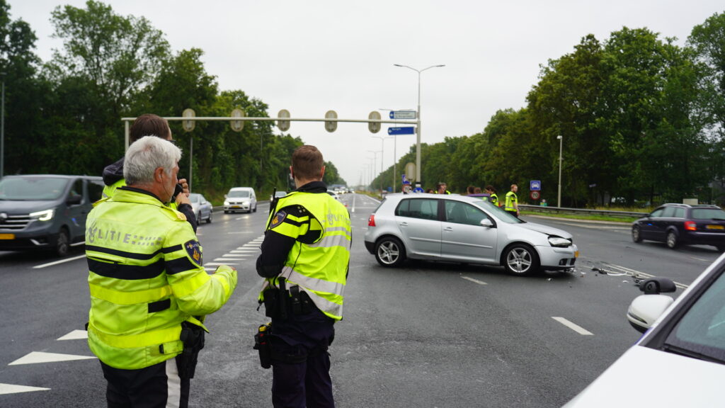 Bij deze aanrijding kwam twee auto flink met elkaar in botsing en is veel schade. De weg ligt bezaaid met onderdelen van beide voertuigen. Bij deze aanrijding is een persoon met onbekend letsel meegenomen naar het ziekenhuis. Vanaf verkeersplein Kooimeer is er een vertraging. Een berger zal komen om beide voertuigen op te halen.