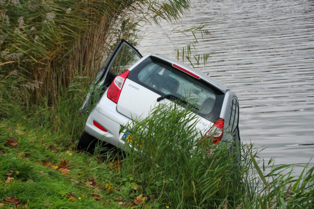 Op de Reuzenpandasingel in Heerhugowaard is vrijdagochtend een auto in het water terecht gekomen.