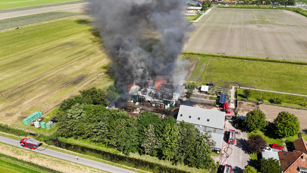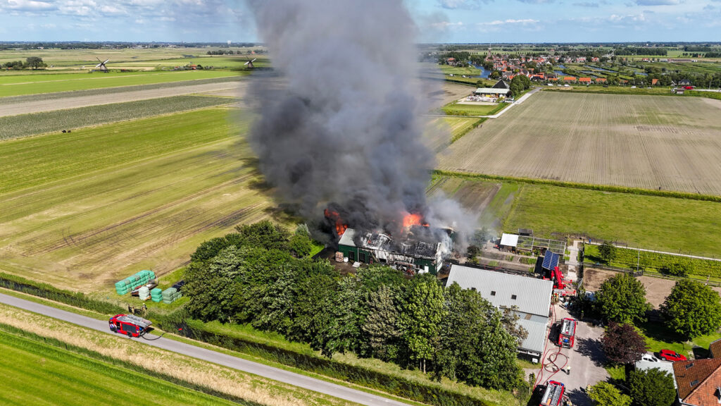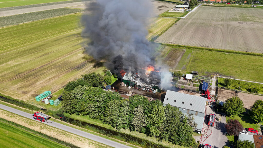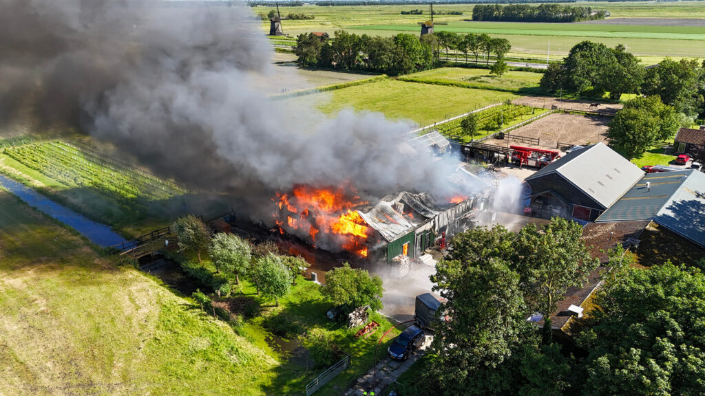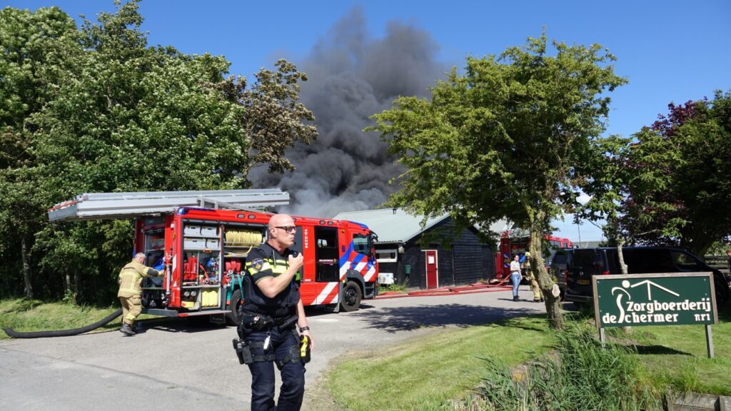 Bij de zorgboerderij is een grote brand. De brand is uitslaand. Alle aanwezigen zijn in veiligheid gebracht. De brandweer gaat water uit de Noordervaart halen om over voldoende water te bezitten.