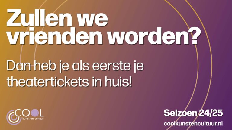 Iedereen die cultuur in het algemeen en Cool kunst en cultuur in het bijzonder een warm hart toedraagt, kan ‘Vriend van Cool’ worden. Vrienden van Cool leveren door hun bijdrage financiële ondersteuning aan het aanbod van Cool en hebben een…
