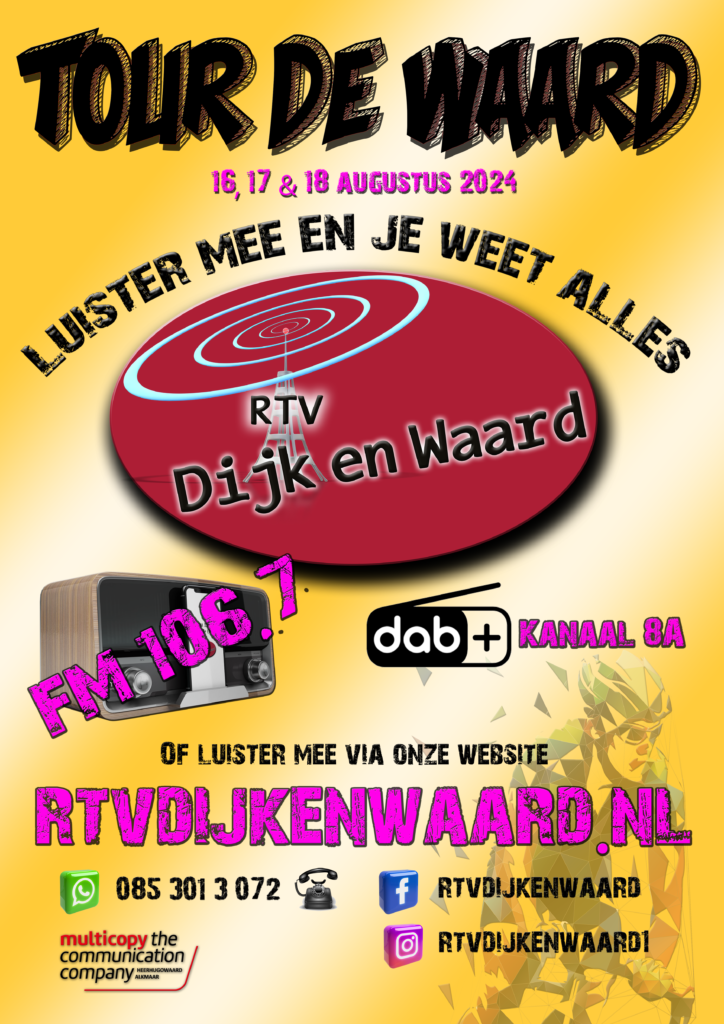 Zorg dat je afstemt op FM 106.7, DAB+ (kanaal 8A), of luister via de streams op www.rtvdijkenwaard.nl om niets te missen van de Tour de Waard en kans te maken op deze geweldige prijzen.