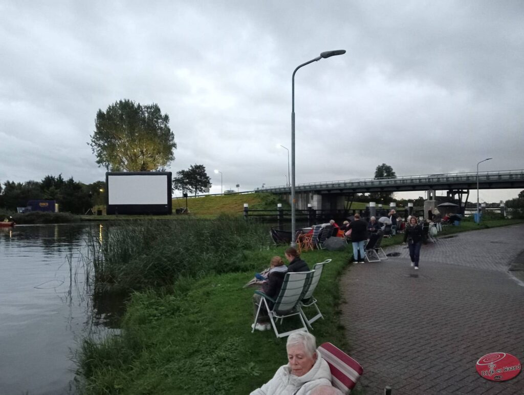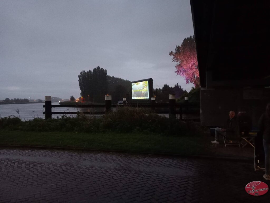 Hoewel het weer in eerste instantie niet helemaal meewerkte, lieten bijna 100 bezoekers zich niet ontmoedigen en genoten ze van een unieke filmervaring temidden van de natuurlijke schoonheid van het Kanaalpark. De sfeer was onmiskenbaar feestelijk en gezellig, ondanks de lichte regenbuien die af en toe voorbijtrokken.