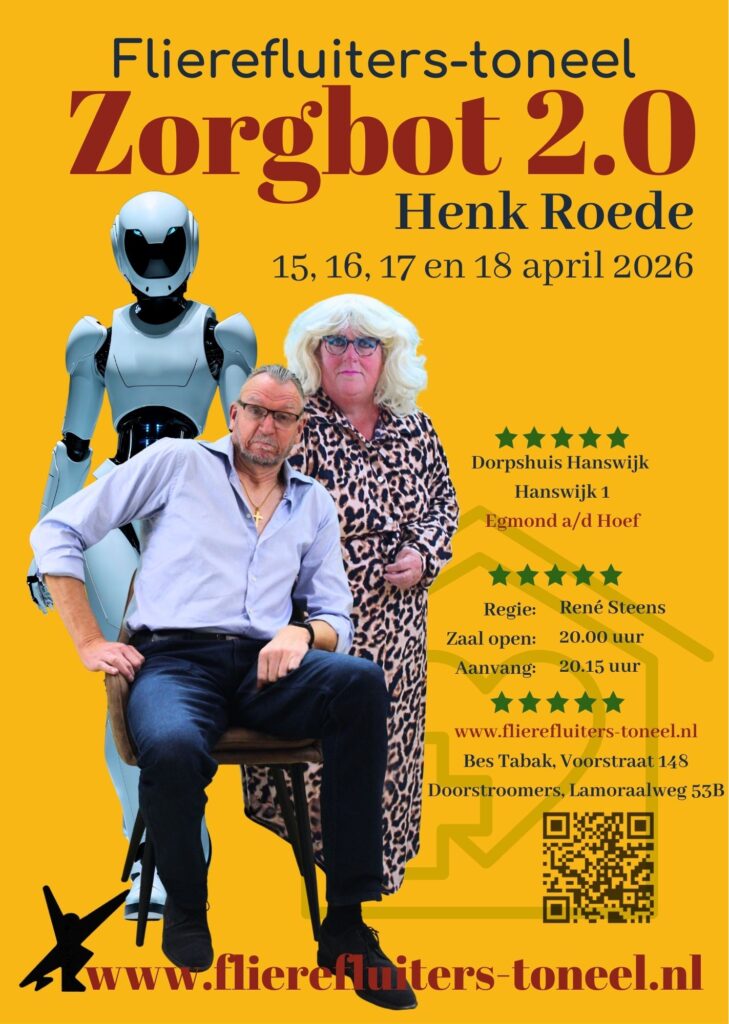 De spelers van Flierefluiters Toneel maken zich op voor een nieuwe reeks voorstellingen. Na het succes van vorig jaar keert de toneelgroep terug met de komedie Zorgbot 2.0, een humoristisch stuk vol herkenbare situaties en een knipoog naar de actualiteit.
