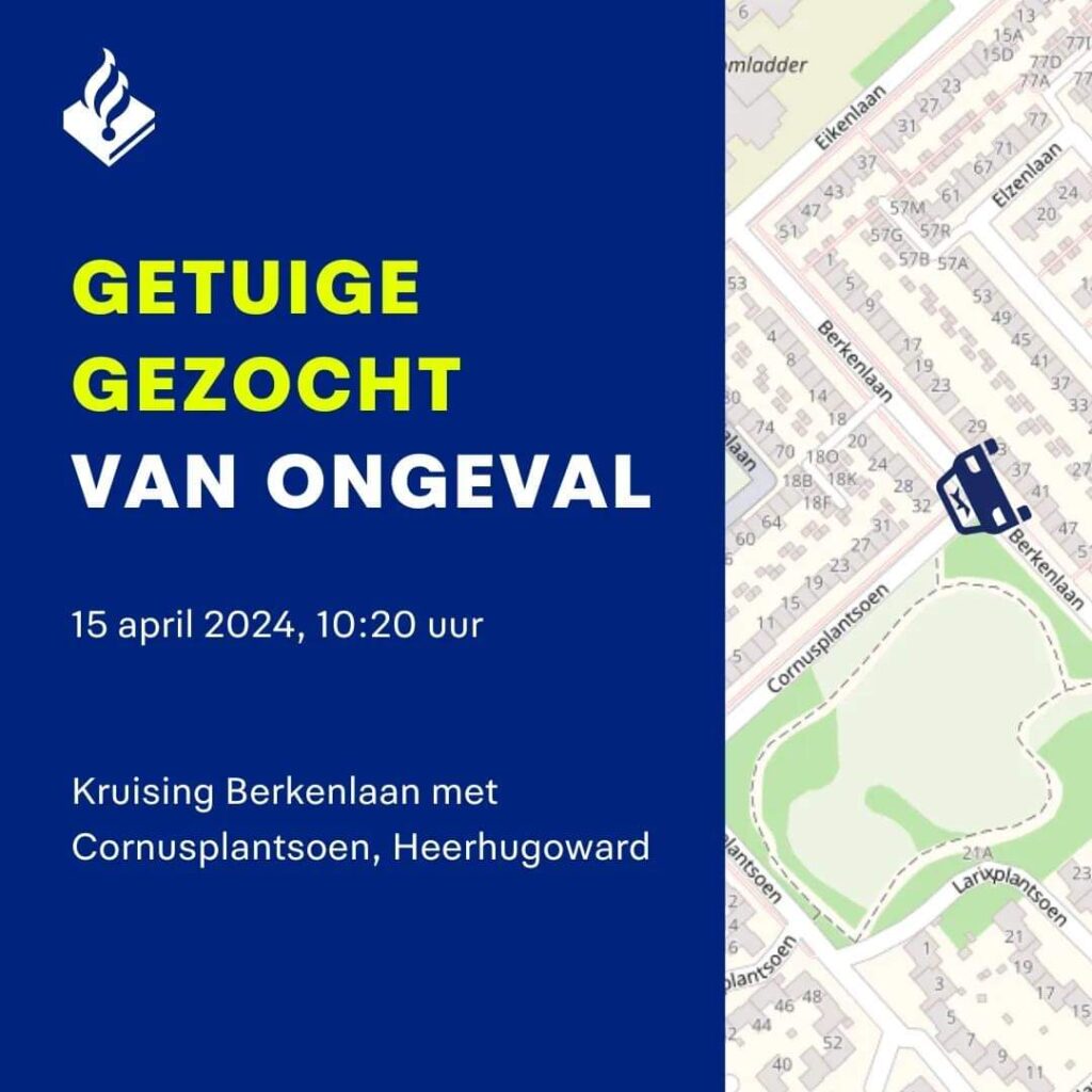 De politie is zoek naar een belangrijke getuige, die direct na het ongeval vanaf de Berkenlaan linksaf de Cornusplantsoen afsloeg. De verdachte van het ongeval had daarvoor geen voorrang verleend aan deze getuige, waar zij naar op zoek zijn. De verdachte reed in een blauwe Suzuki Wagon R.