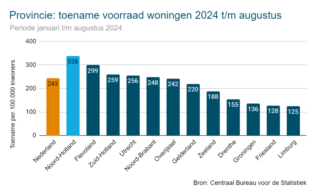 Afgezet naar het aantal inwoners kent Noord-Holland dit jaar de grootste toename van de woningvoorraad. Vergeleken met vorig jaar zijn in Noord-Holland 12 procent meer woningen aan de woningvoorraad toegevoegd.…