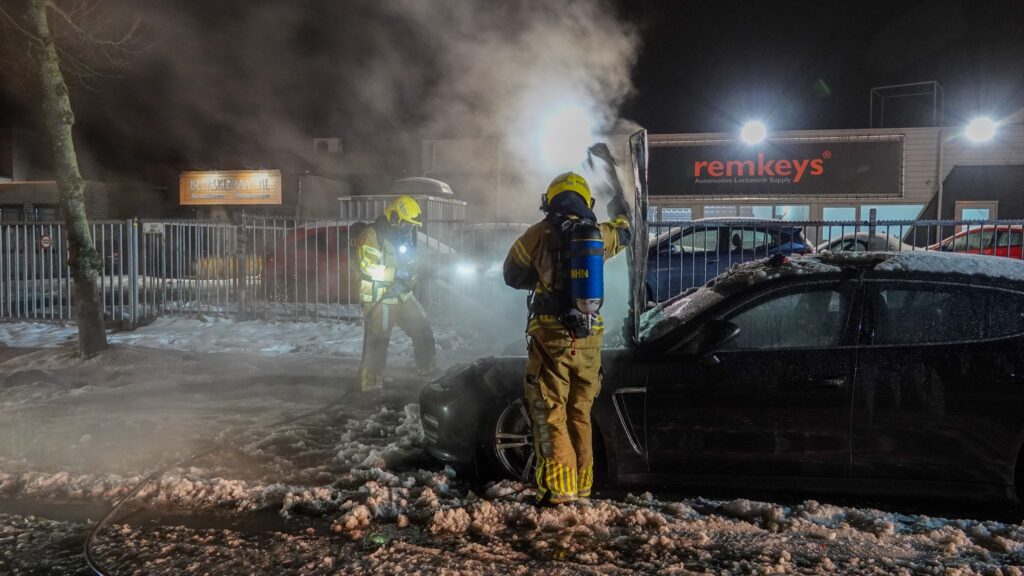 In de nacht van woensdag op donderdag is een luxe Porsche Panamera door brand volledig verwoest aan de Kelvinstraat op industrieterrein Zandhorst in Heerhugowaard. De brand werd rond 01.30 uur…