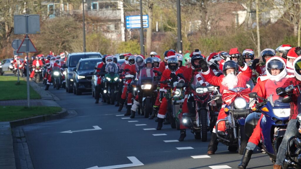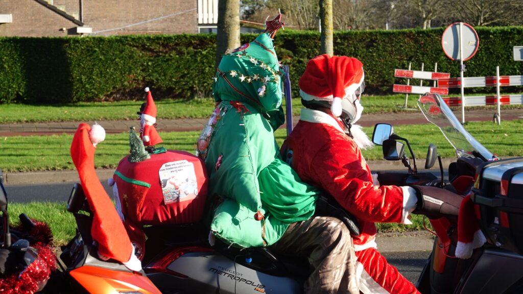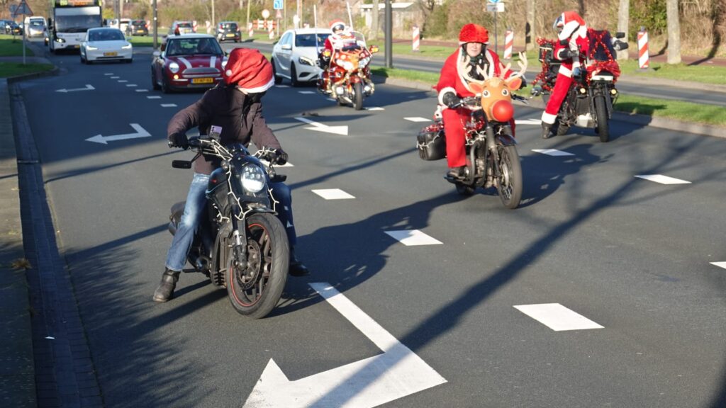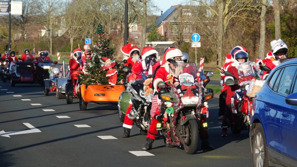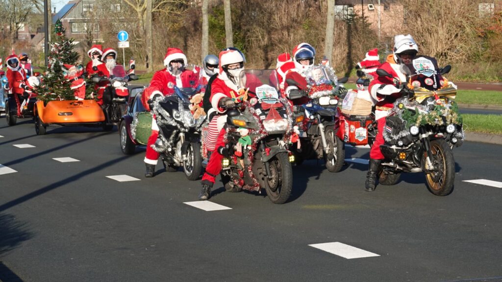 Een stoet van 156 feestelijk versierde motoren trok afgelopen zaterdag door Noord-Holland tijdens de jaarlijkse Santa Máxima-motortocht. Motorrijders, uitgedost als kerstmannen en -vrouwen, reden gezamenlijk een route om geld in te zamelen voor het Prinses Máxima Centrum voor kinderoncologie in Utrecht.