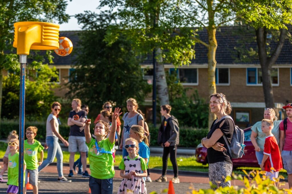 mogen de kinderen zelf schieten op de korf.