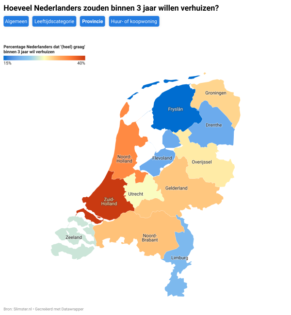 Over heel Nederland ligt de toename van de woningvoorraad dit jaar 14 procent lager dan vorig jaar. In de provincies Groningen, Friesland en Limburg is de toename van de woningvoorraad per inwoner het kleinst. In Noord-Holland, Flevoland en Zuid-Holland is de grootste toename te zien.
