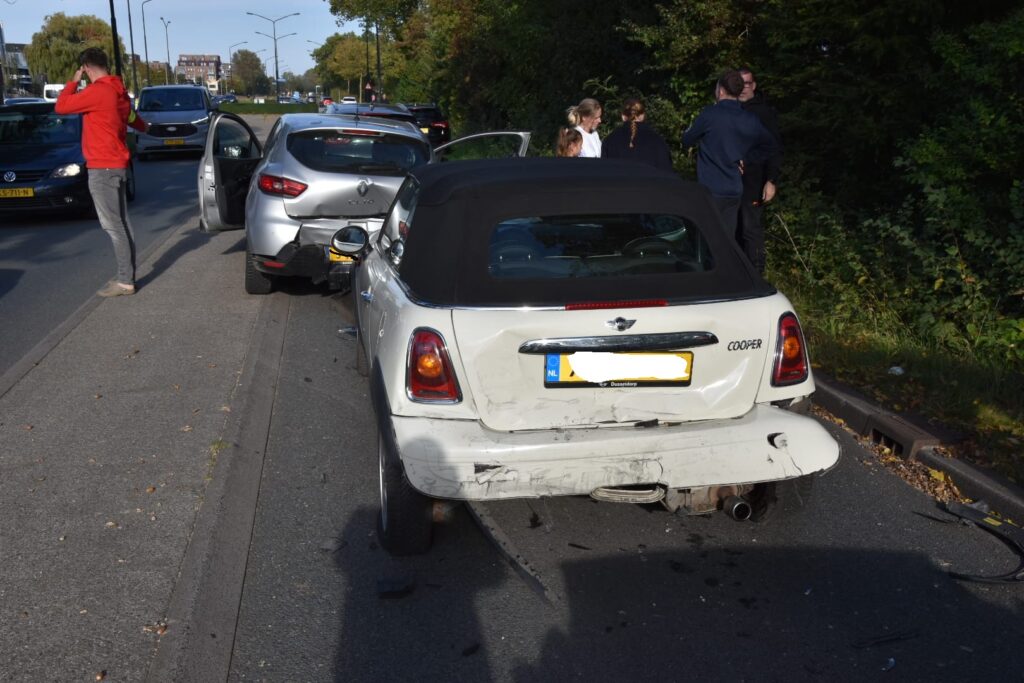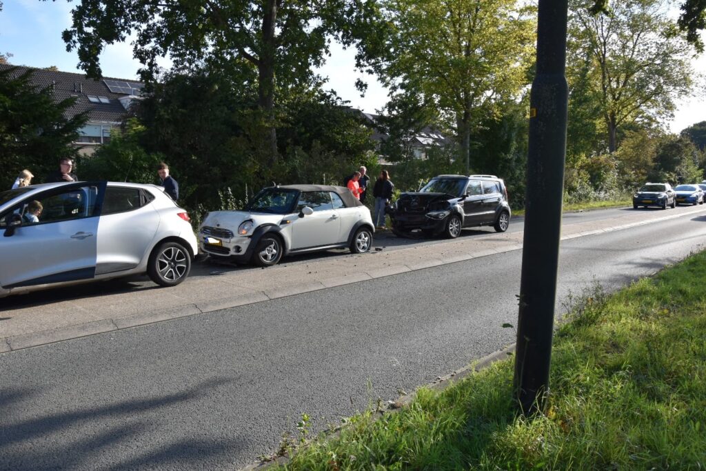 Het ging mis bij de kruising met de Umbriellaan. De vier voertuigen konden niet meer op tijd tot stilstand komen en kwamen met elkaar in botsing. De schade na het ongeval was flink. De auto’s konden hun weg na het ongeval niet meer vervolgen.