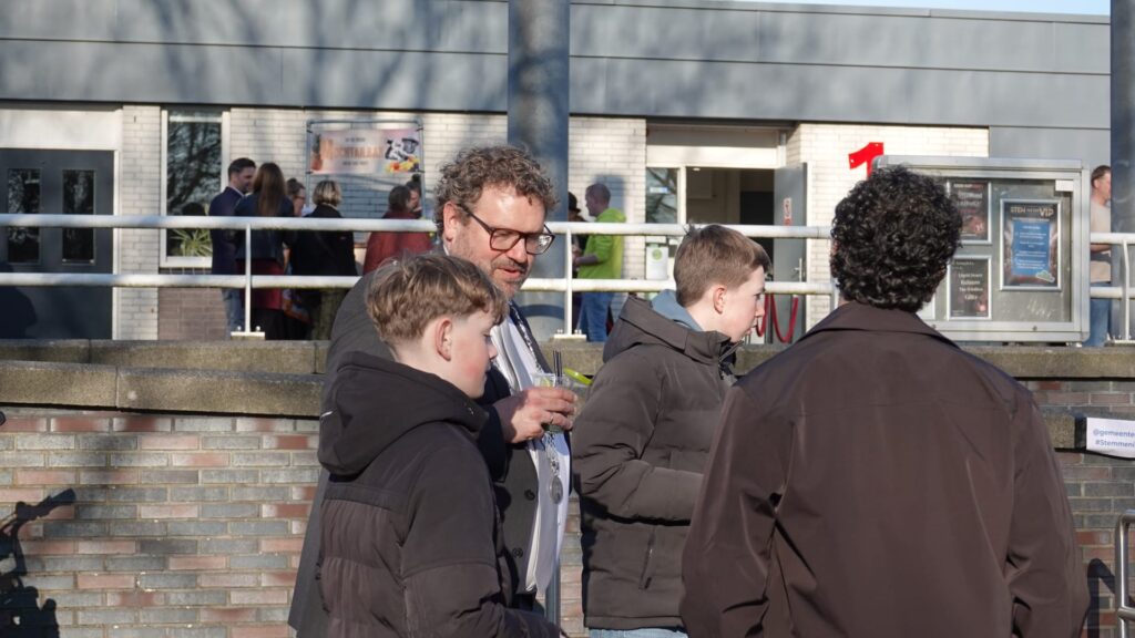 Ook burgemeester Maarten Poorter is aanwezig om het initiatief te ondersteunen en in gesprek te gaan met jonge kiezers.