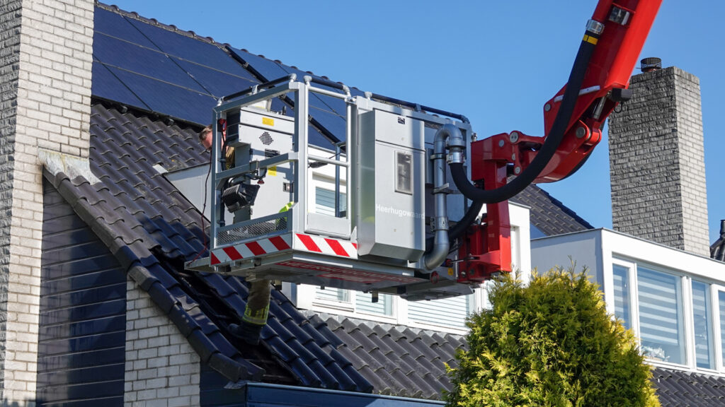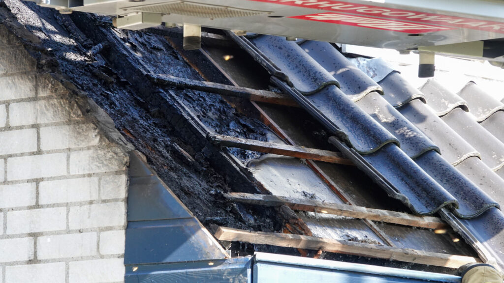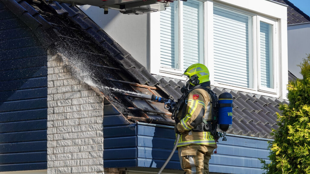 Om 16:48 uur werd gemeld dat de brand zich onder de dakpannen bevond. De brandweer heeft daarom een aantal dakpannen verwijderd om beter zicht te krijgen op het vuur.